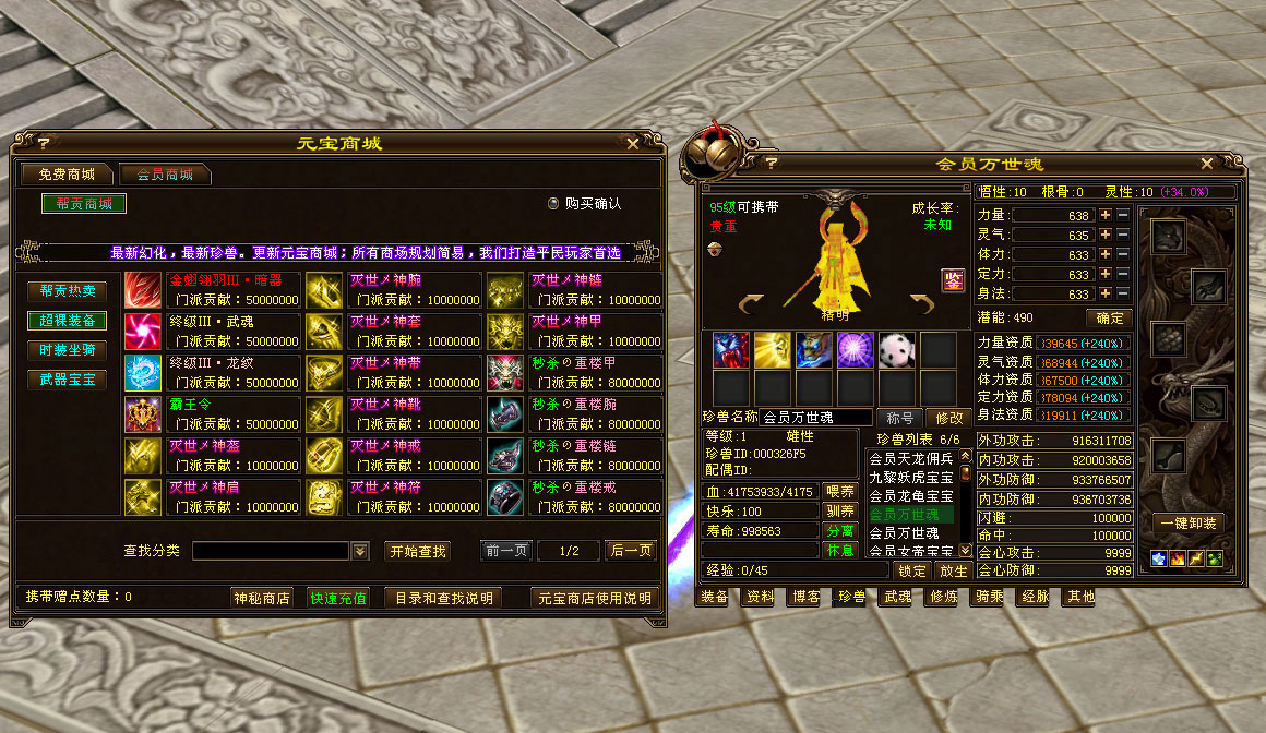100元=10亿门贡+2亿属性+会员武器+VIP属性幻彩名